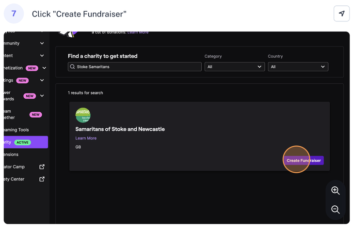 Once you have set up your Twitch channel and enabled the necessary extensions, it's time to create a fundraiser specifically for Samaritans of Stoke-on-Trent and Newcastle. Here's how: